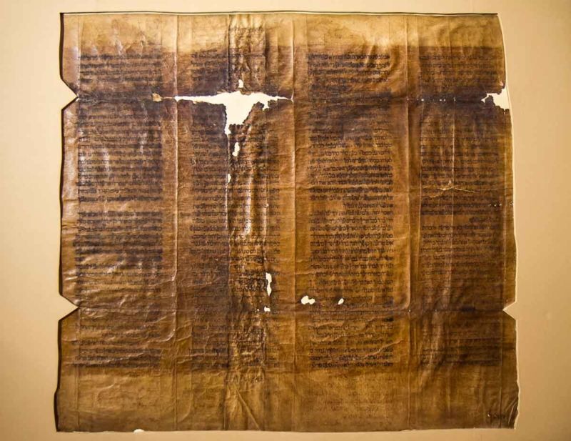 The scroll is believed to date from the 13th century and to have belonged to Calahorra’s own synagogue, where Rabbi Abraham ben Ezra died in 1167. After the expulsion of 1492, the synagogue was converted into the convent of San Francisco, today housing the museum of processional steps. The Torah fragment now resides in the cloister of the Cathedral of Santa María, within the Museo Diocesano.